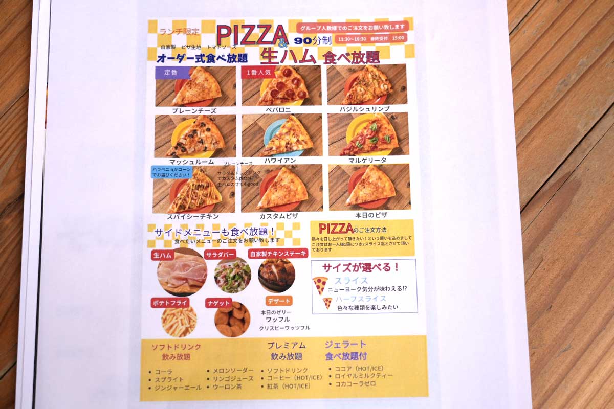 なお食べ放題限定でピザはハーフスライスが選べます↓