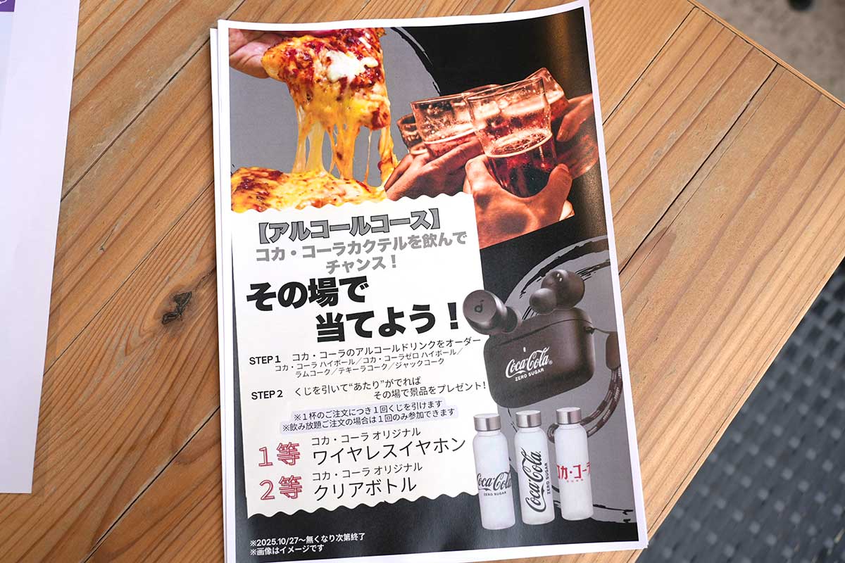 10月27日(月)からは、コカ・コーラ社のドリンクやコカ・コーラを使ったカクテルを飲むと抽選で景品が当たる、