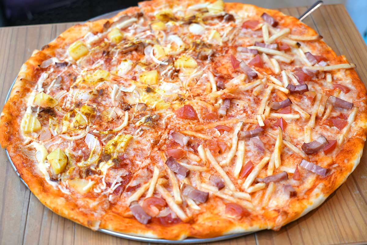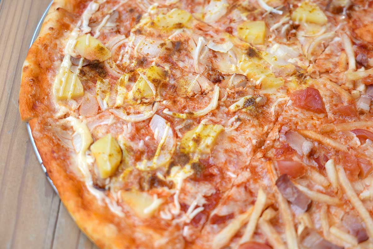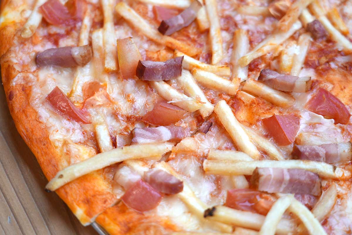 ピザの上にポテトという大胆発想。ジャンキーでたまらん。