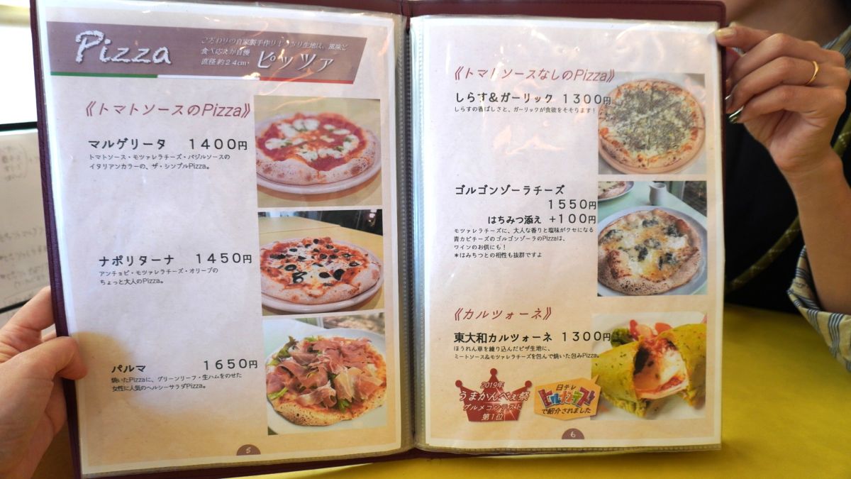 定番の「マルゲリータ」や、テレビで紹介されたこともあるという「東大和カルツォーネ」などいろいろ。