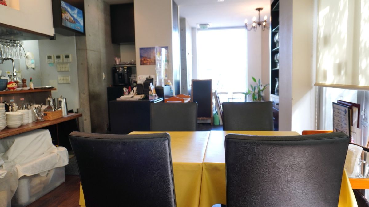 奥の席にはお客さんがいたので、手前の席の雰囲気を撮ってみました。