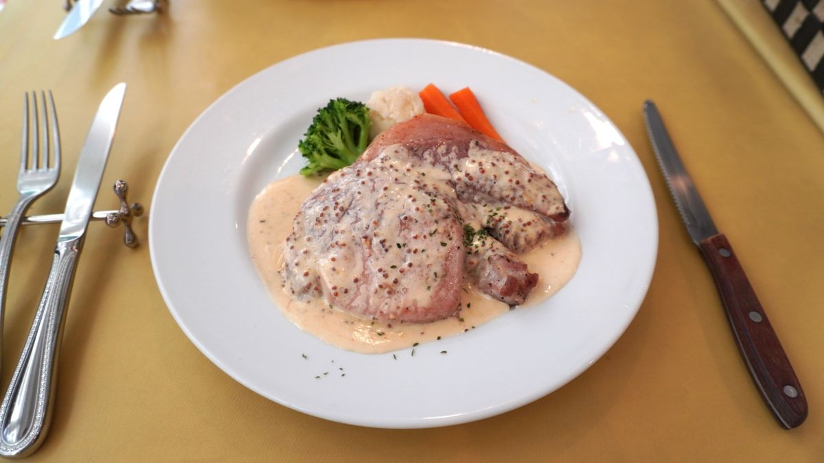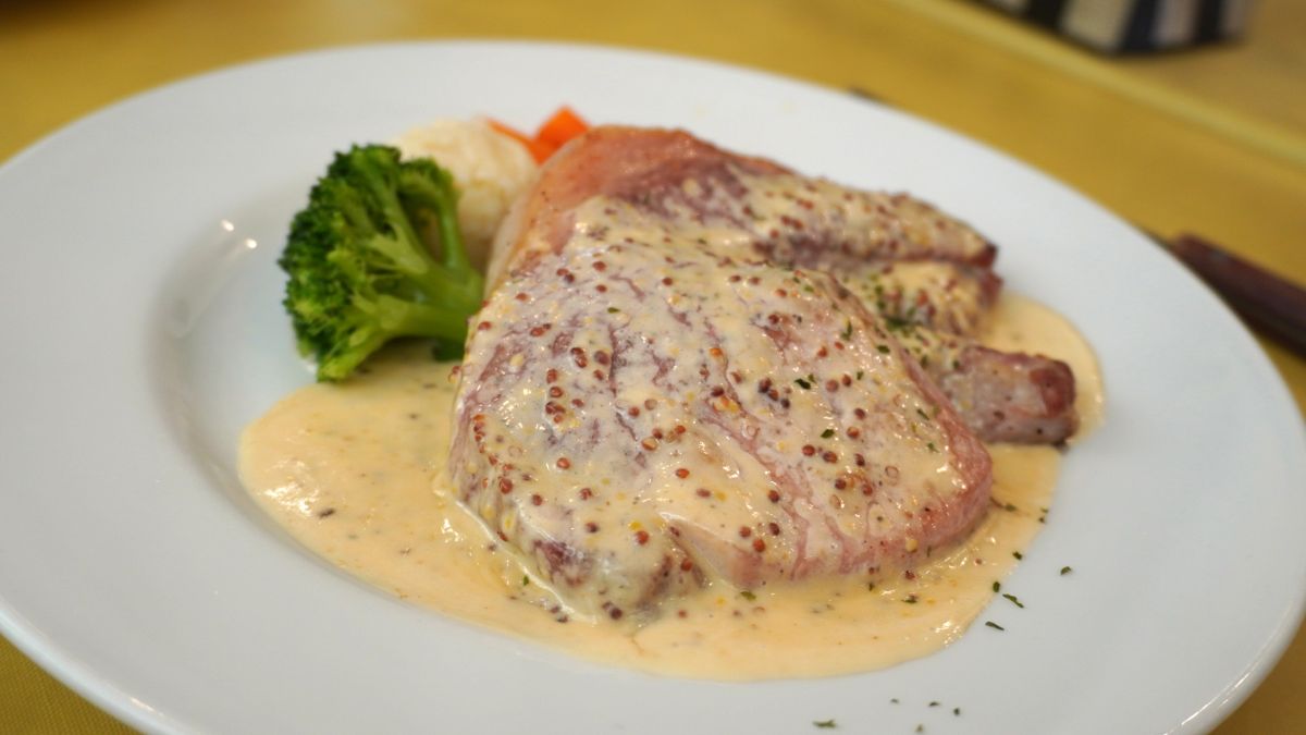 「厚切り三元豚ポークソテー マスタードクリームソース」!