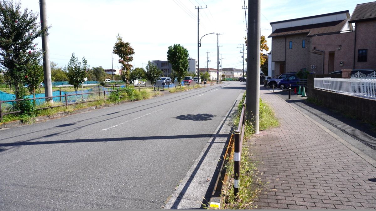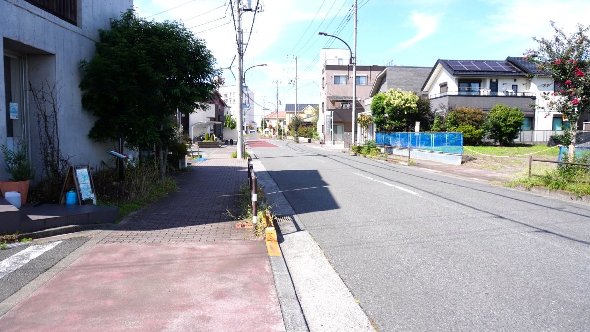 先に見える大きな建物を左に曲がっていくと多摩モノレールの上北台駅方面。