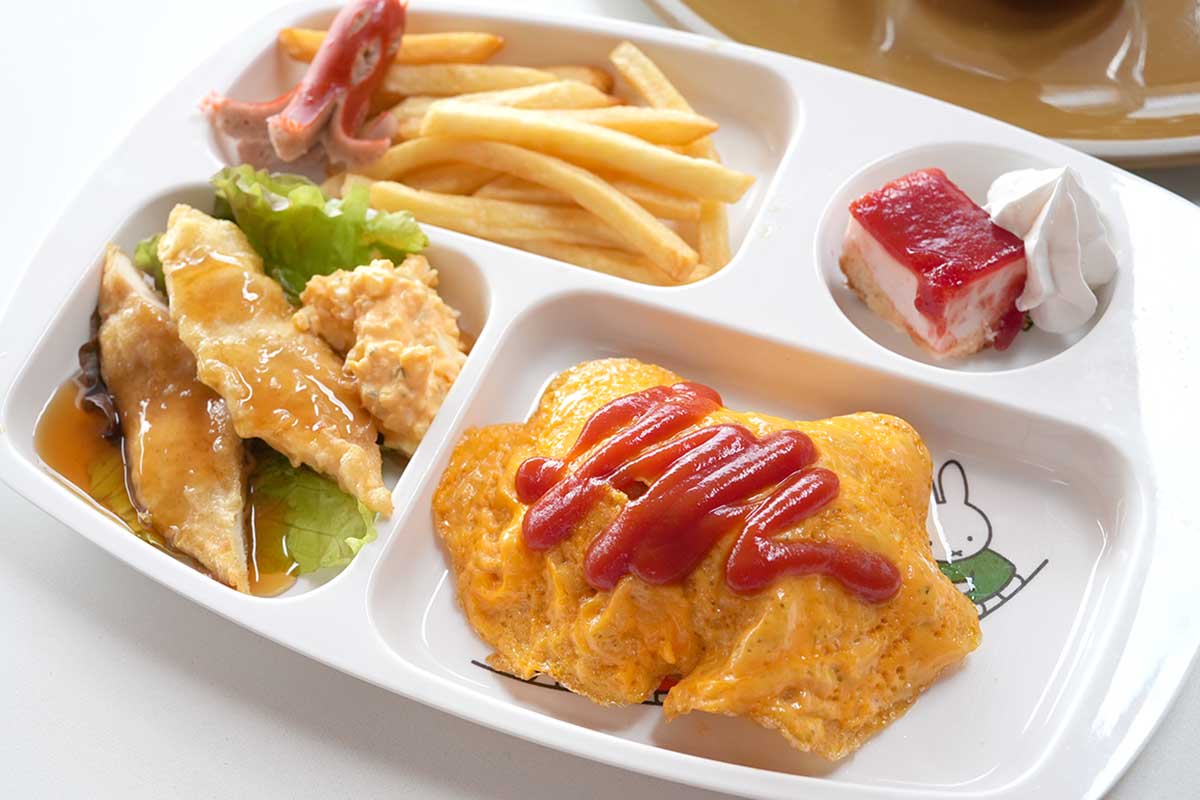 鶏天・ポテト・たこさんウィンナー・オムライス・ケーキがついた、まさにスペシャルなお子様セット。