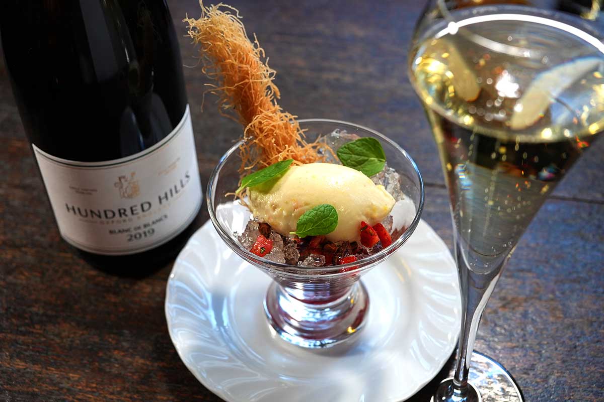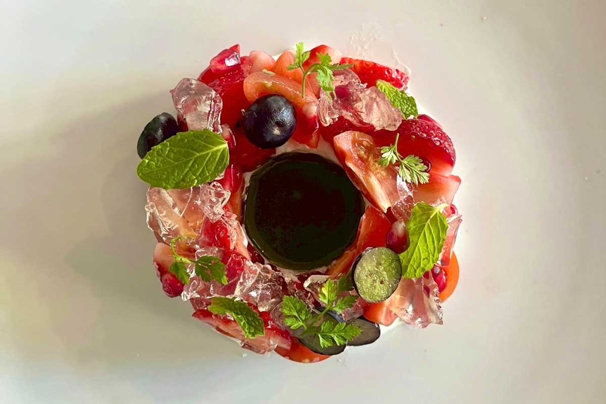 アミューズ「フォアグラのアイスクリーム ベリーのマリネとビーツのピュレ」