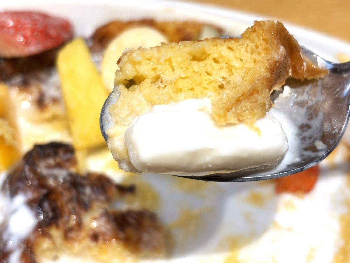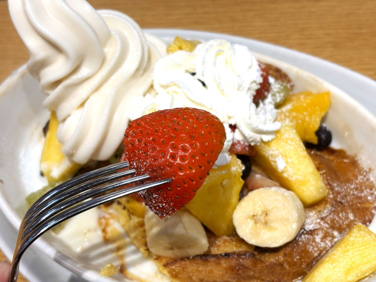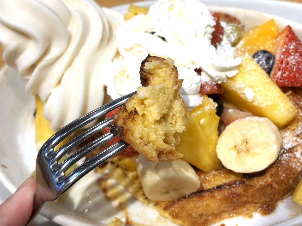 ジューシーなフルーツとフレンチトーストの甘みが口の中いっぱいに広がります。