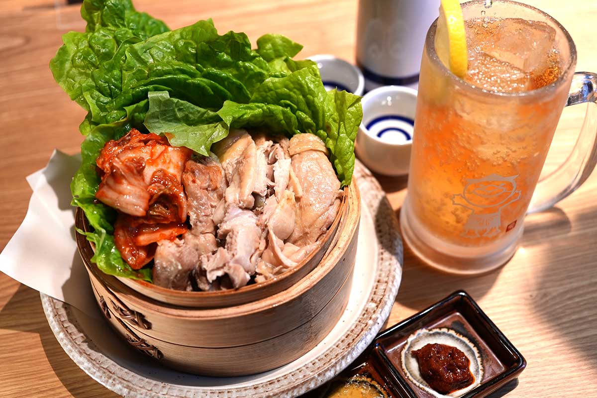 ポッサムと言えば茹でた豚肉をキャベツや薬味と一緒に巻いて食べる韓国料理ですが、こちらは大山どりを使用しています。ヘルシーなのに食べ応えアリ。