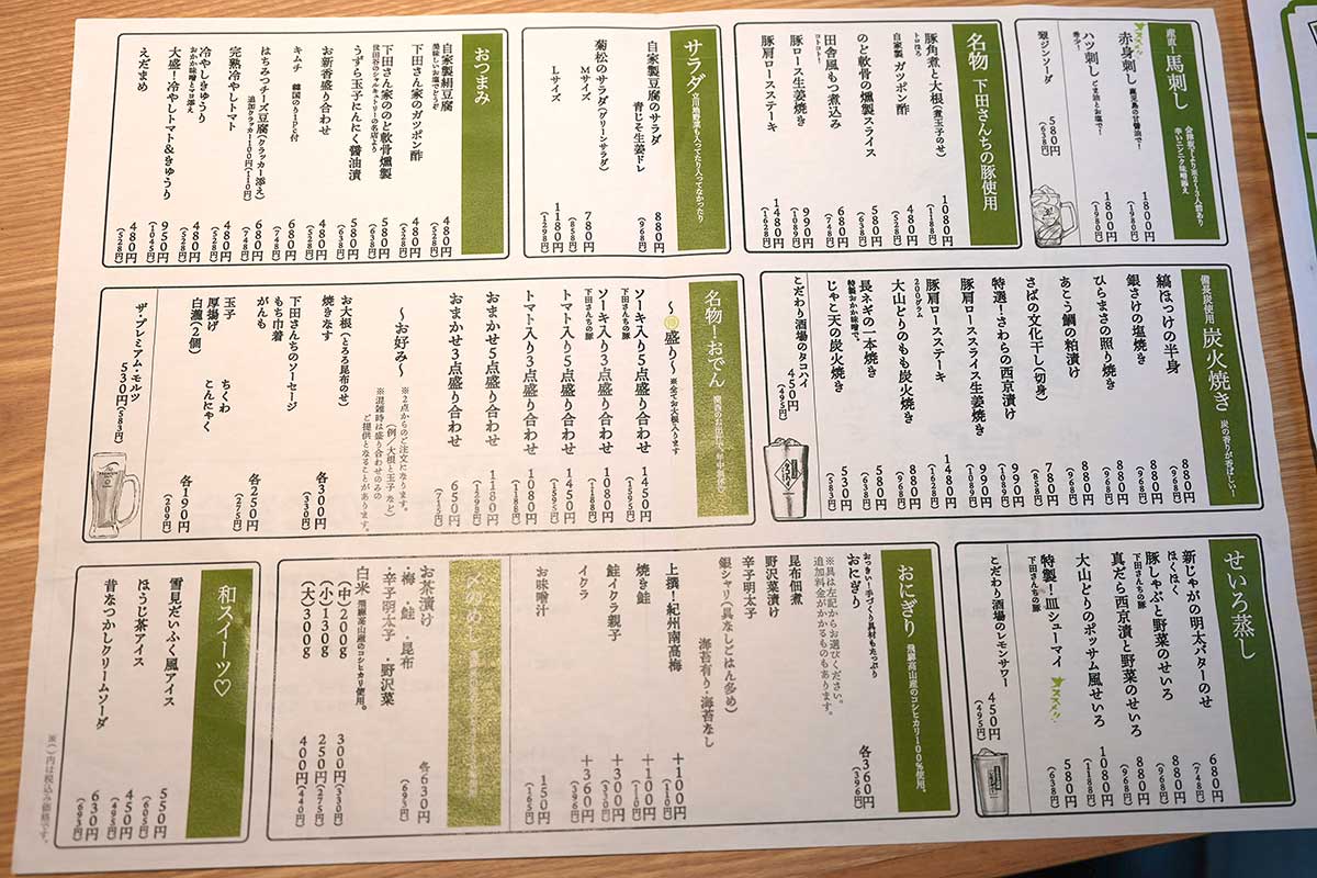 会津坂下直送の「馬刺し」『菊松食堂』名物のおでんなど幅広いラインナップ。