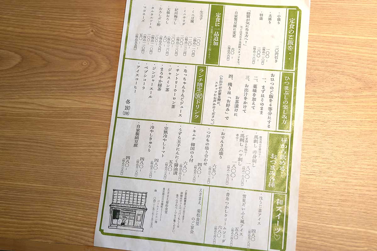 昼も吞める、夜も定食が食べられる居酒屋『えきまえ菊松食堂』