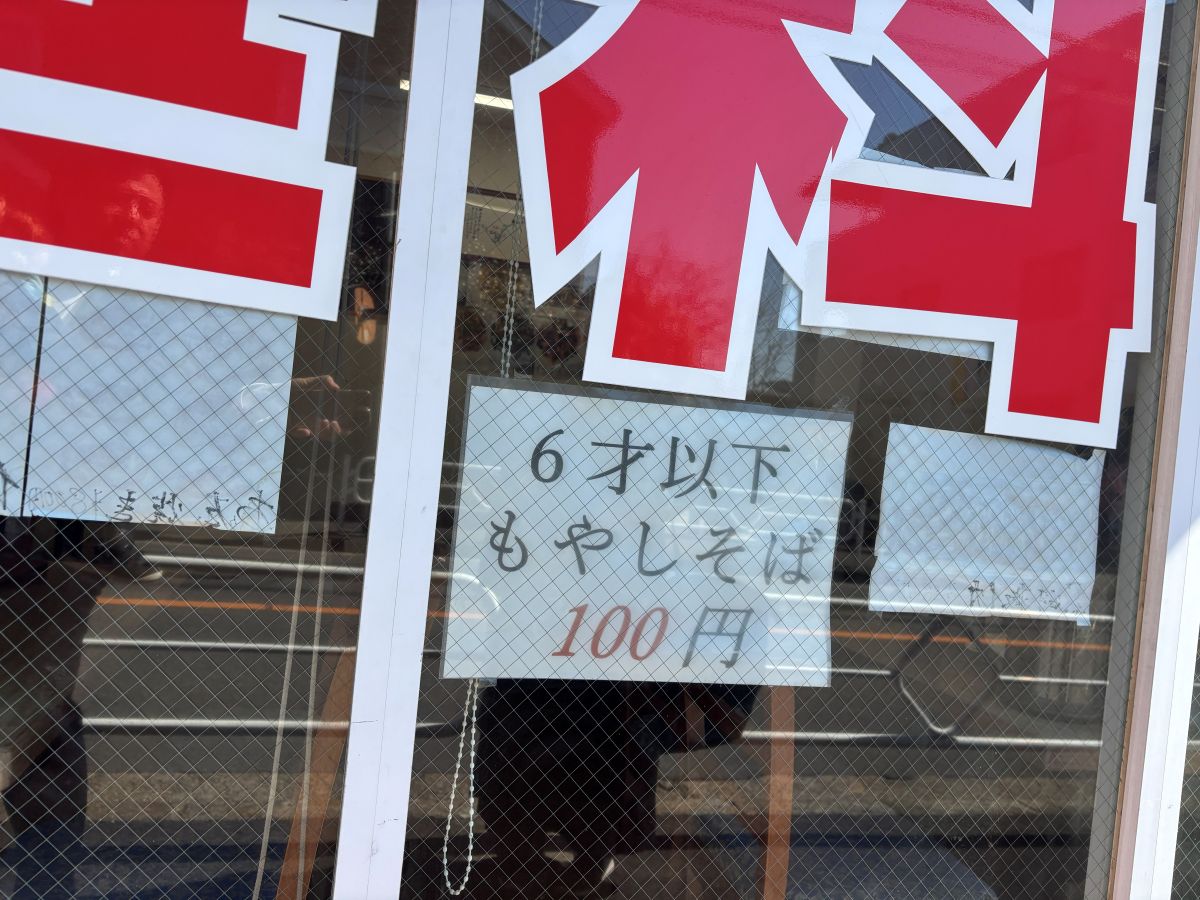6才以下 もやしそば 100円。