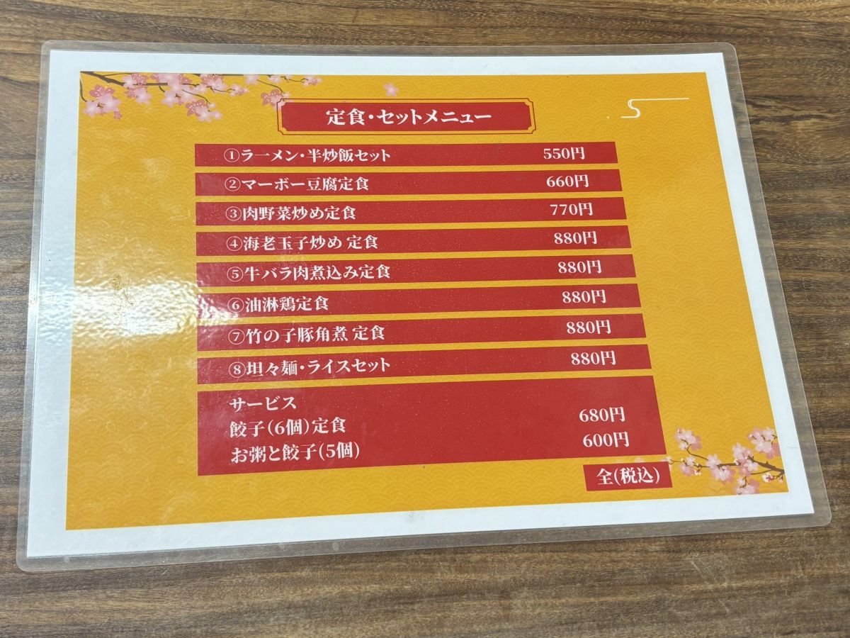 デカデカと書かれた中華料理の4文字の力強さ、思わず心惹かれてしまいます。