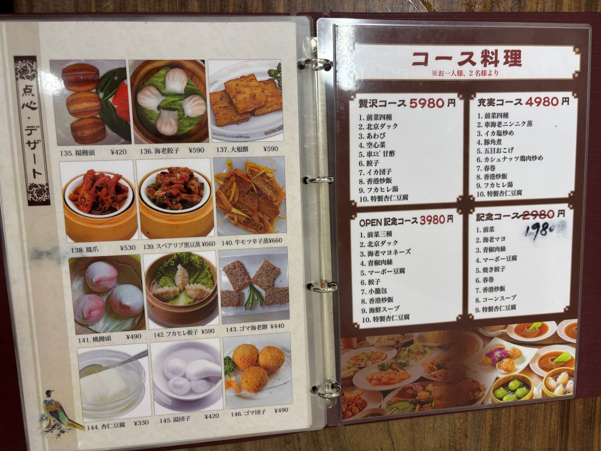 記念コースは、2,980円と書かれていたのが1,980円に上書き修正されています。