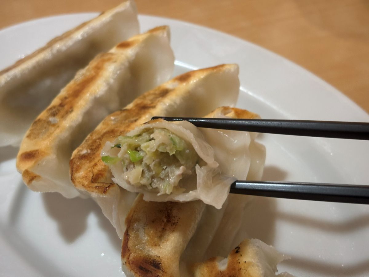 餃子は中身がパンパンに詰まった、丸めのフォルム。