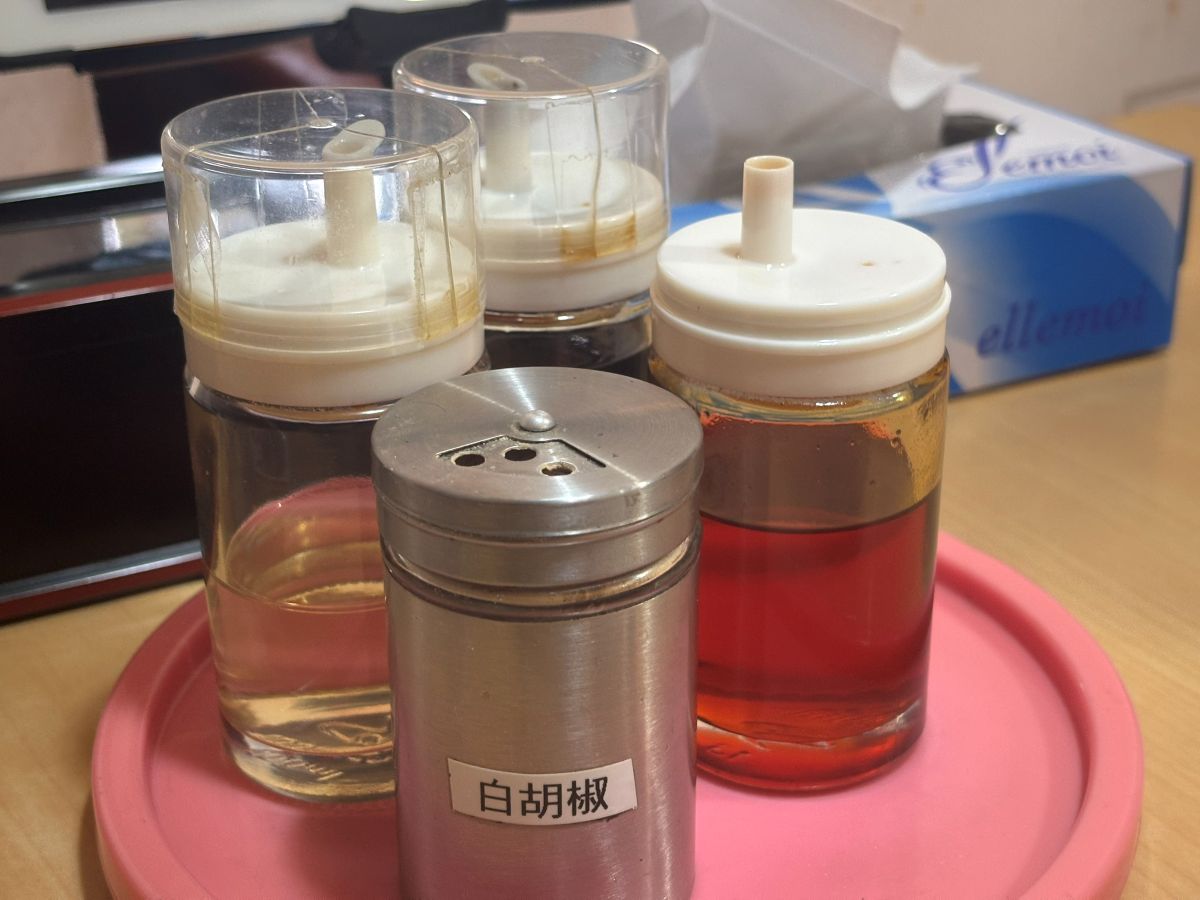 卓上には定番の調味料たちが並んでこちらを見ています。
