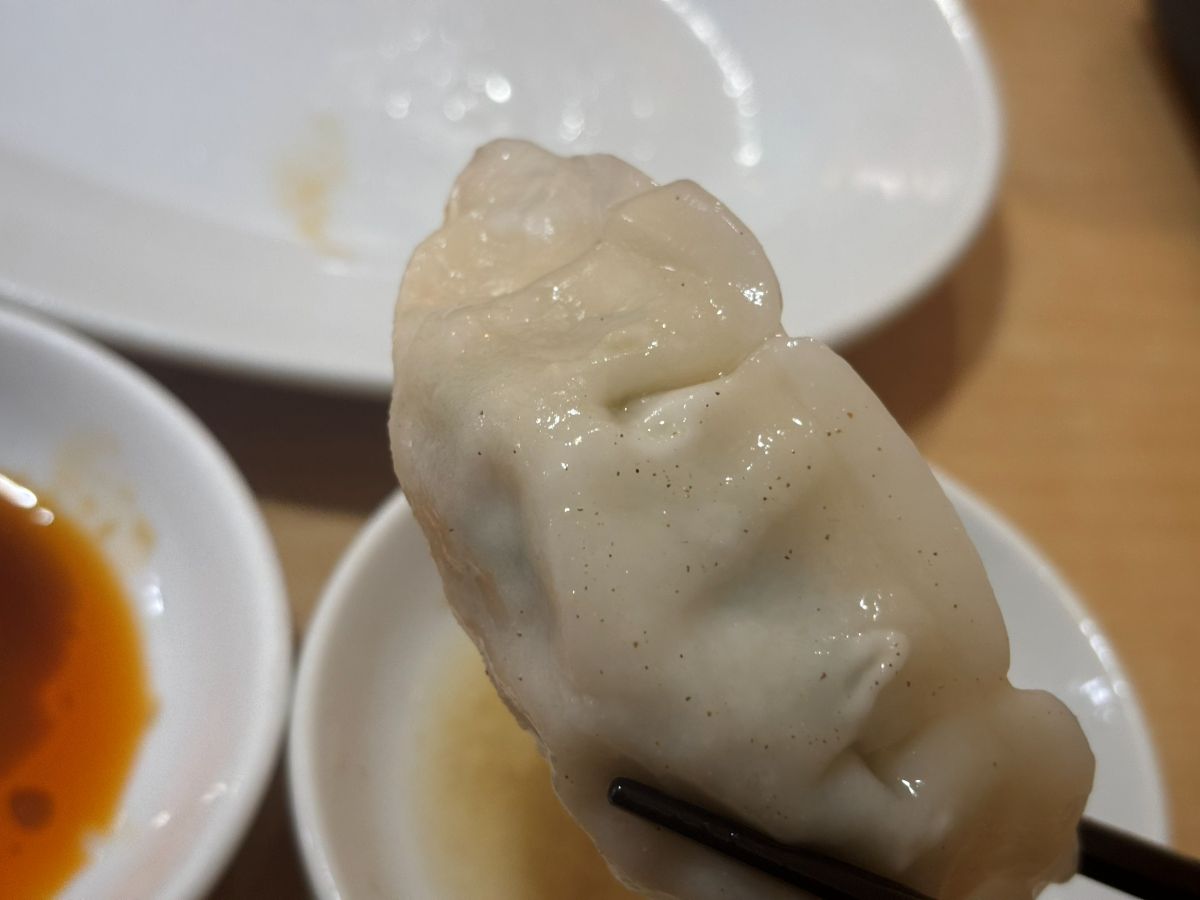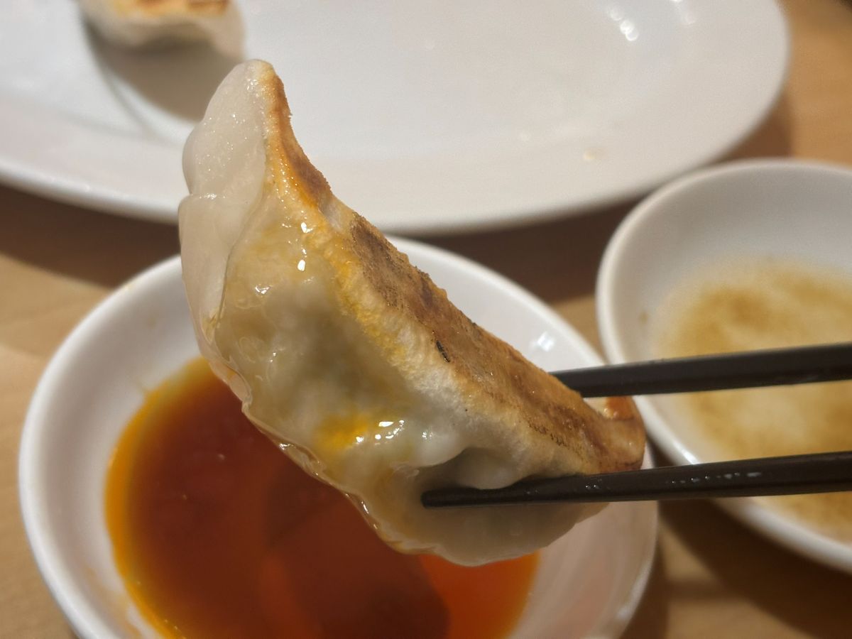 酢醤油ラー油に潜らせた餃子は酸味と辛味が餡の甘さが引き立ちます。