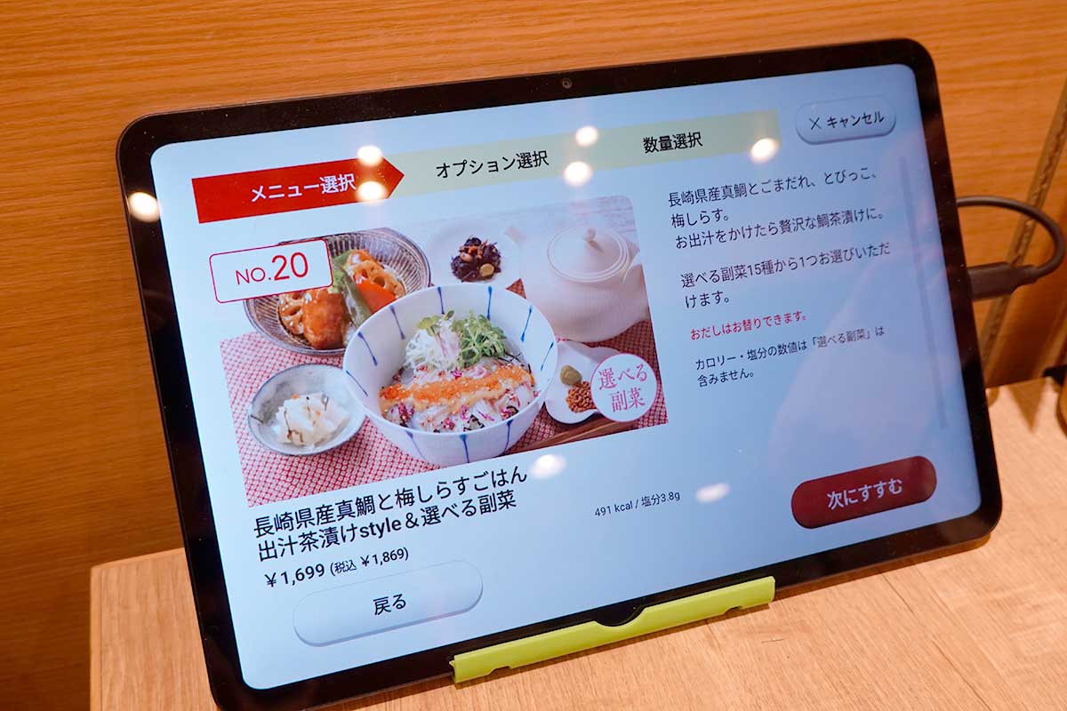 タッチパネルで副菜などを選んでオーダー完了!