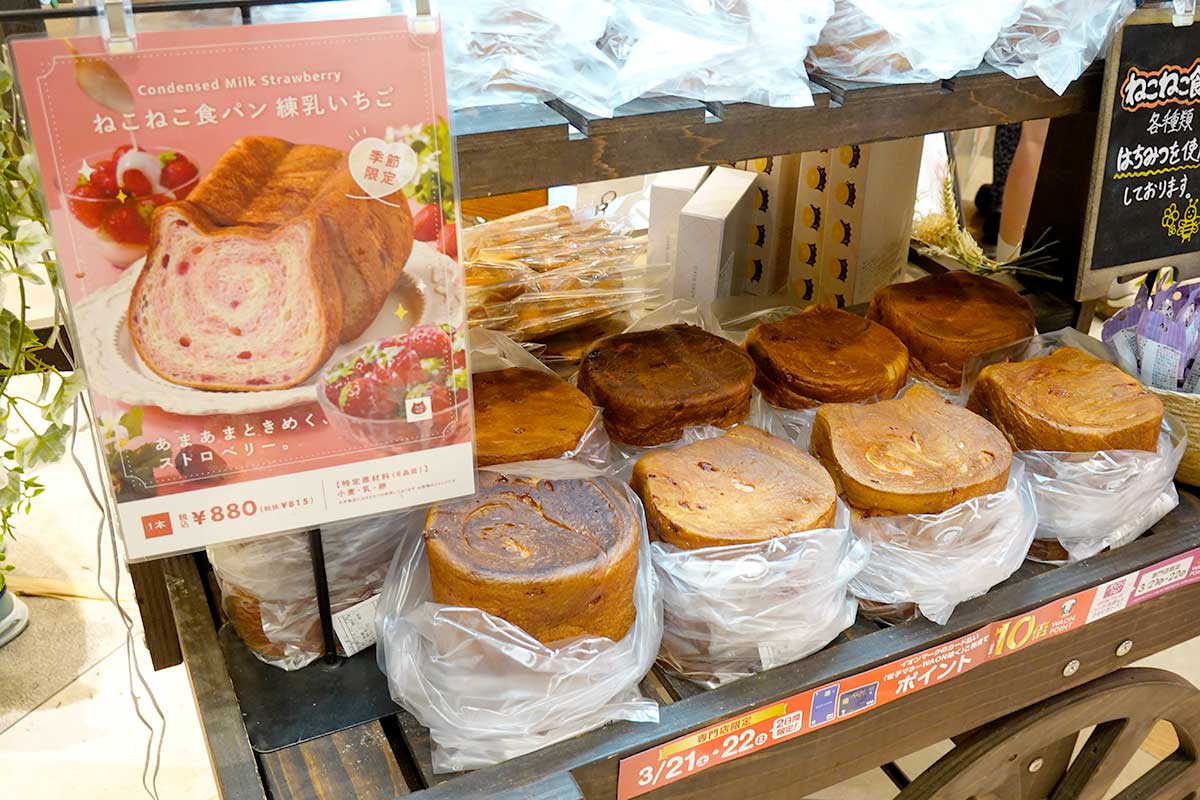 「ねこねこ食パン 練乳いちご」880円。