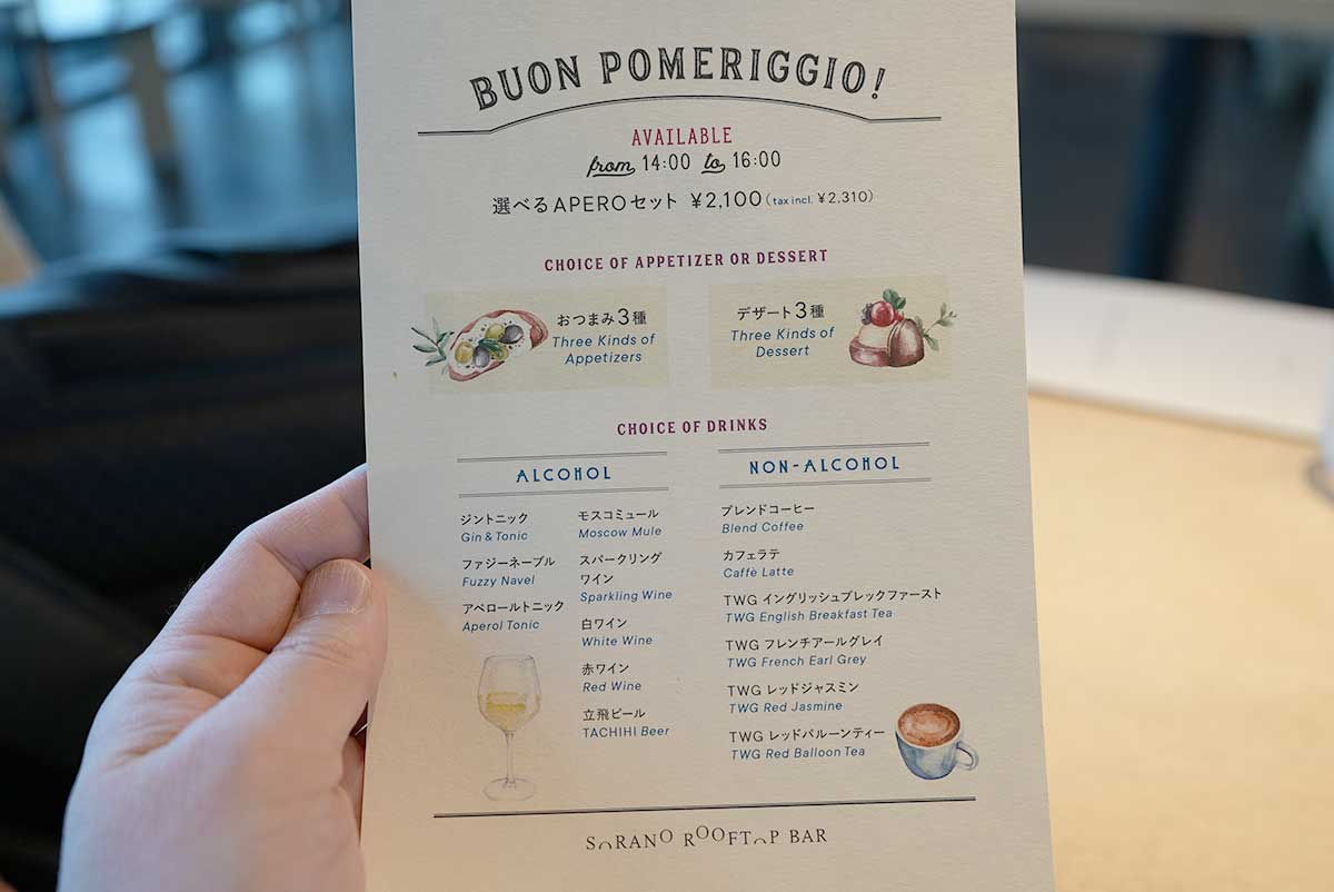 14〜16時のお楽しみ!グリーンスプリングス『ソラノ ルーフトップバー』へ行ったら「選べるアペロセット」があったので注文してみた