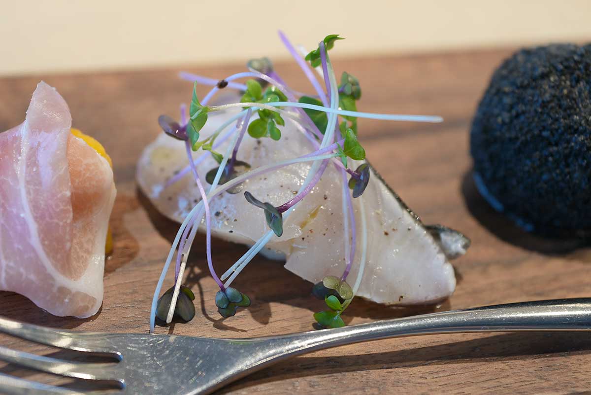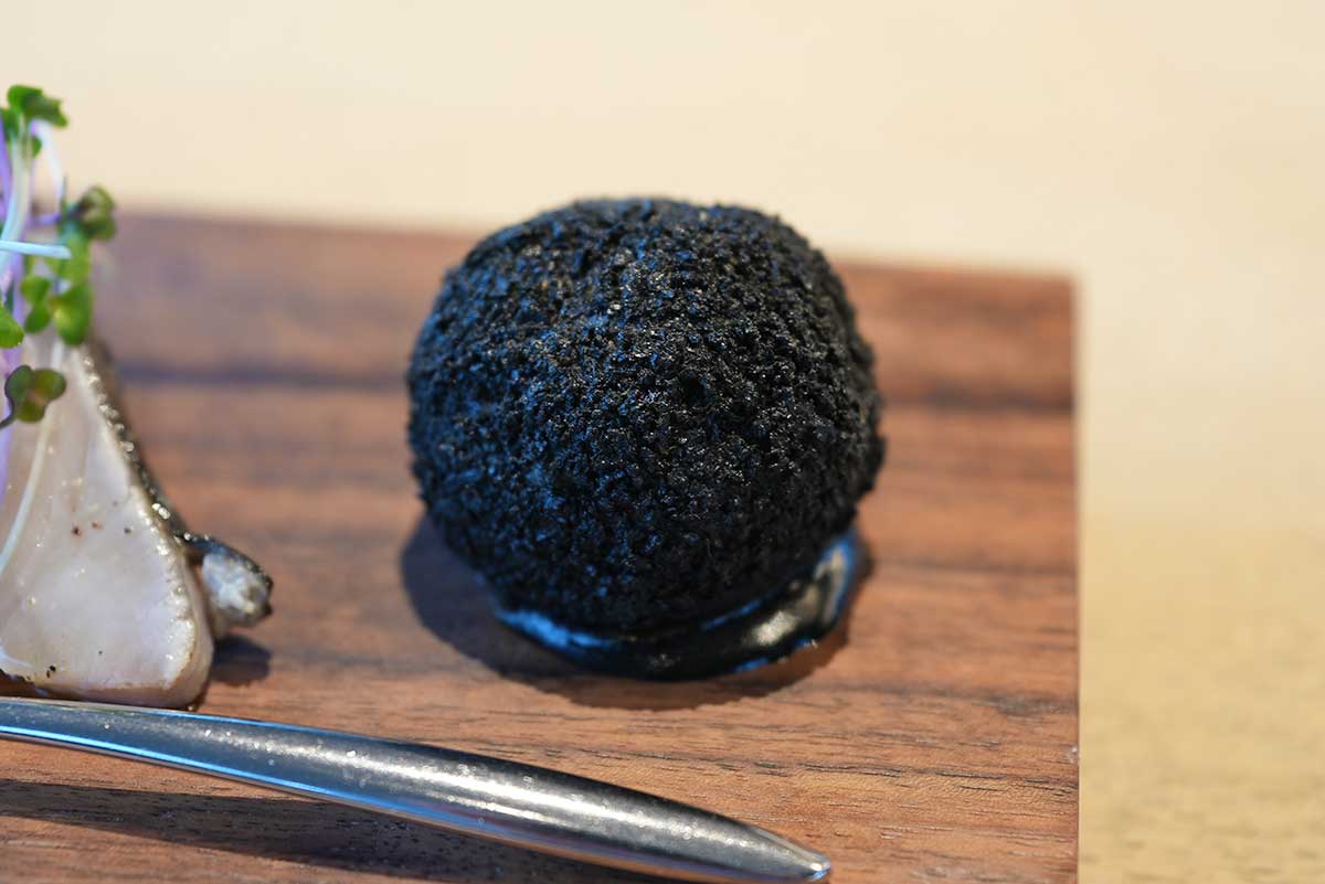 自家製イカ墨マヨネーズの上にのっています。すんごい濃厚!