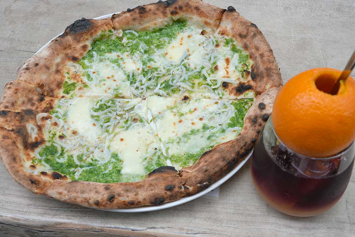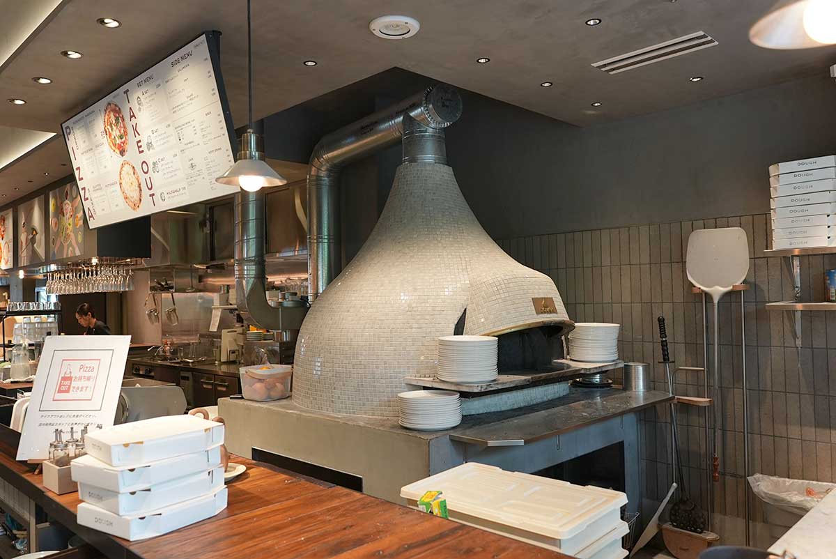 カッチョいいピザ窯と薪がうずたかく積まれた店頭はインパクト抜群。