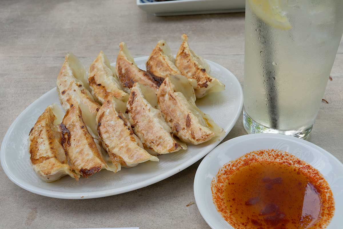 「東京X(エックス)餃子」660円(写真は2人前)と「自家製レモンサワー」560円。