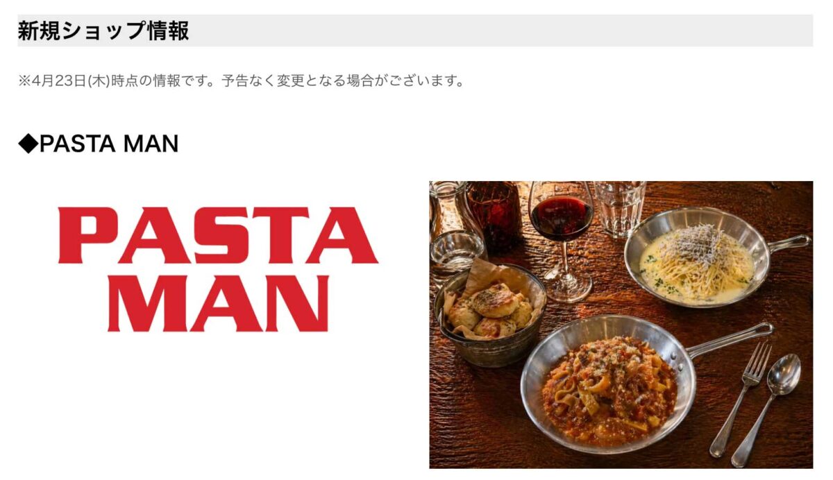 【開店】4月28日オープン!パスタ屋『PASTA MAN』