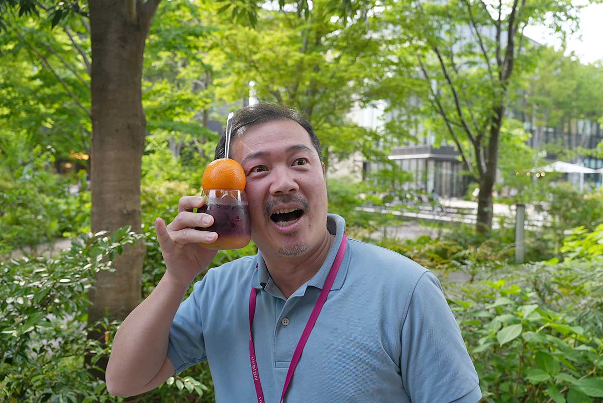 サングリアの上にのるオレンジは、オーダー毎に専用マシンで生搾りしていて超新鮮!