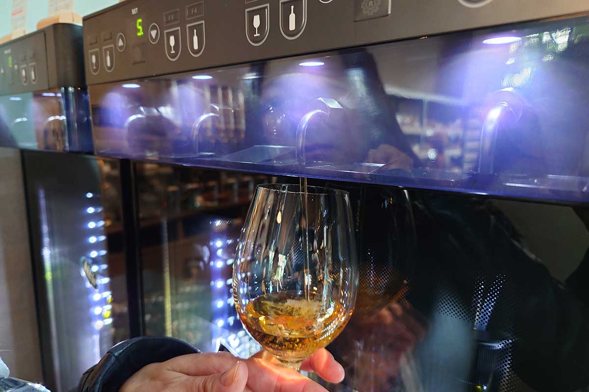 お好みのワインの注ぎ口にワイングラスを持ってきて、白く光るグラスワインボタンを押します。