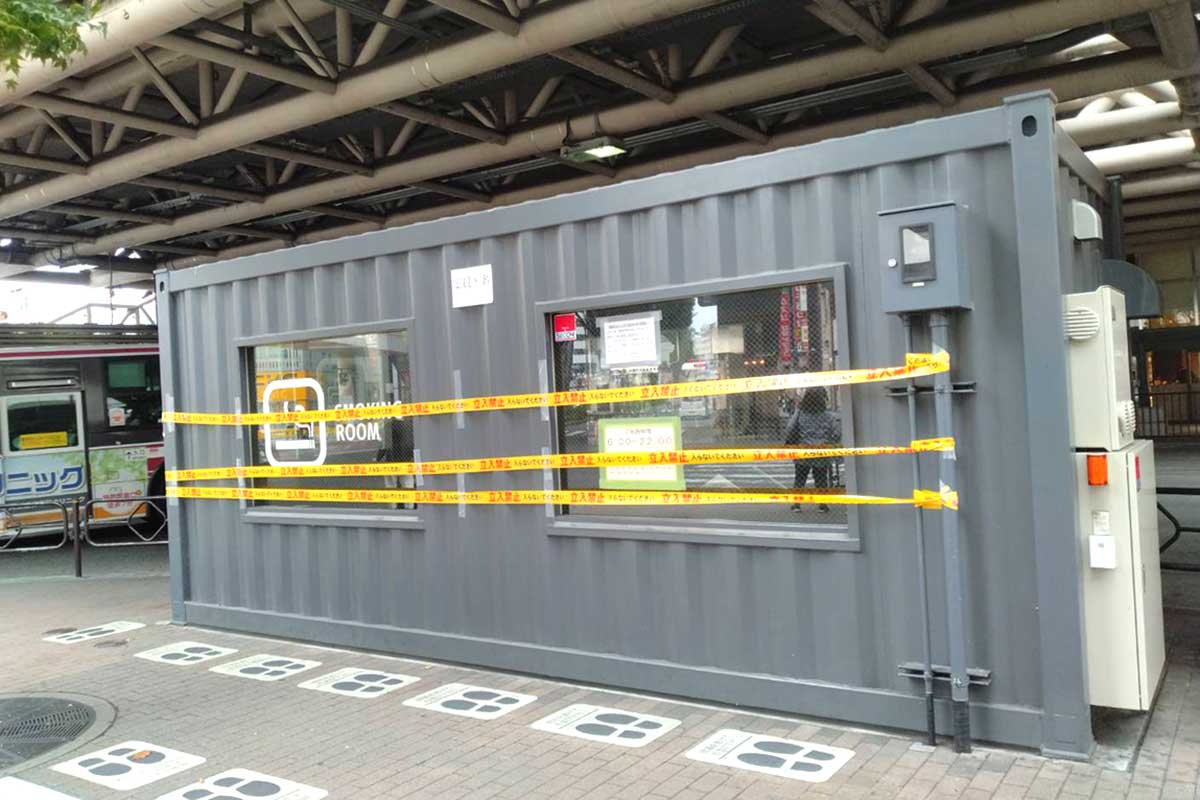 立川駅北口の公衆喫煙所に立ち入り禁止のテープが巻かれています。