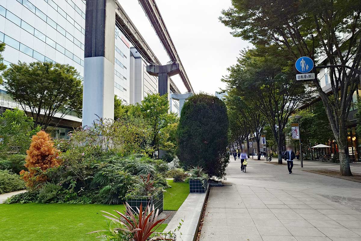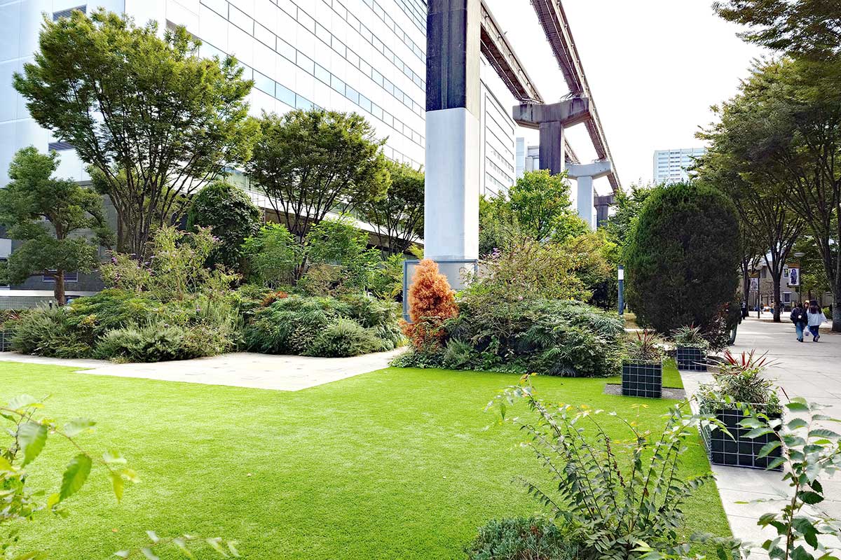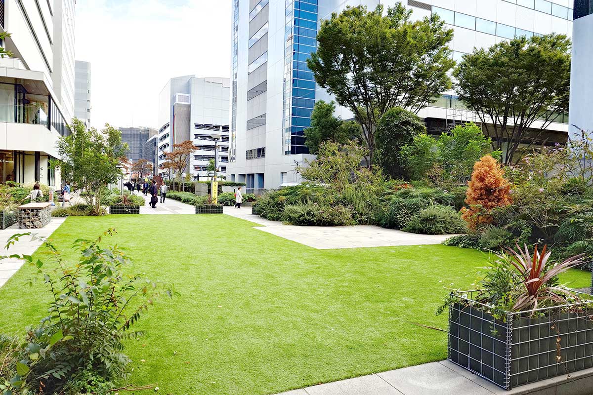 緑がいっぱい滑れない!立川駅北口・サンサンロードのウッドデッキが人口芝生の広場になってる