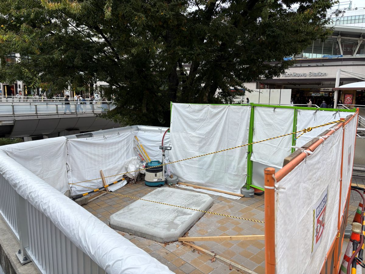 お披露目間近!立川駅南口デッキにウドラとくるりんのモニュメントができるみたい。竣工は11/18(火)予定