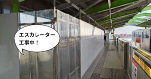 2月下旬までのロング工事!多摩モノレール『泉体育館駅』コンコース〜2番線ホーム(多摩センター行き)のエスカレーターが工事してる