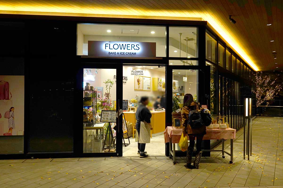 グリーンスプリングス2階にある、カフェ花屋が一緒になったお店FLOWERS BAKE&ICE CREAMで、