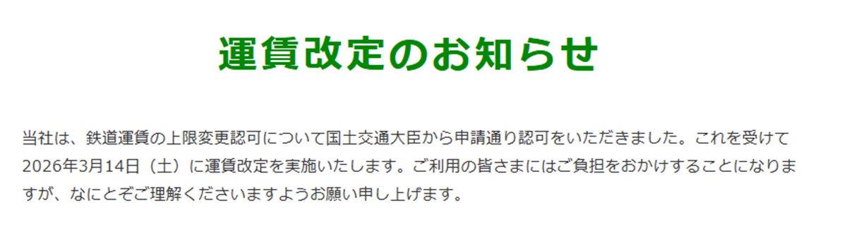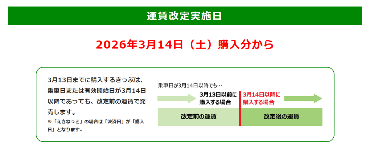 つまり、仮に2026年3月14日(土)以降乗車分だったとしても、