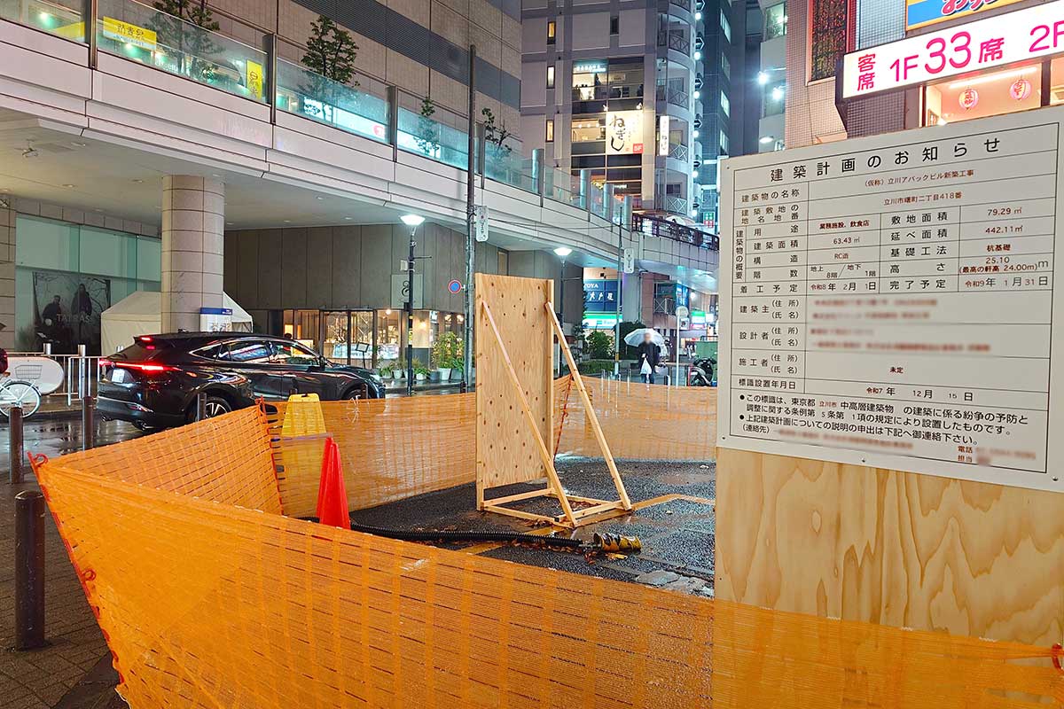 立川駅北口・ピタゴラス通りぞいに新しくビルが建つようです。