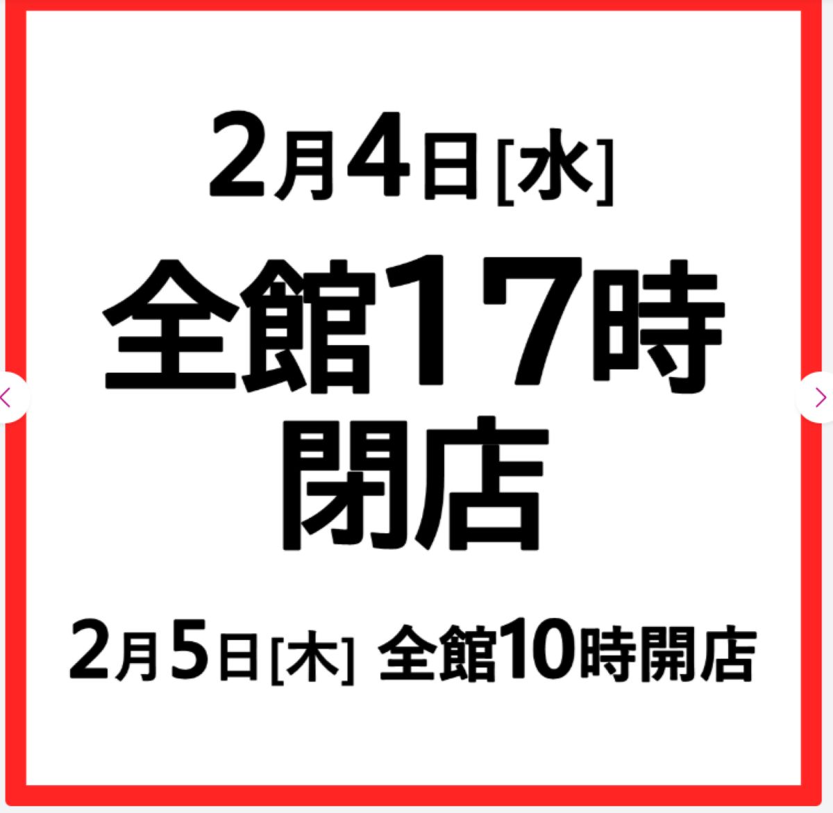 17時以降は開いてません!2月4日(水)はイオンモールむさし村山が全館17時に閉店。翌2月5日(木)は全館10時開店