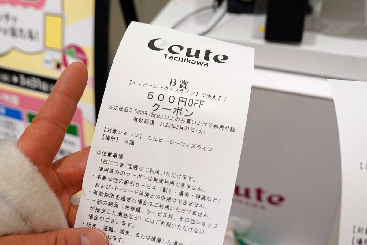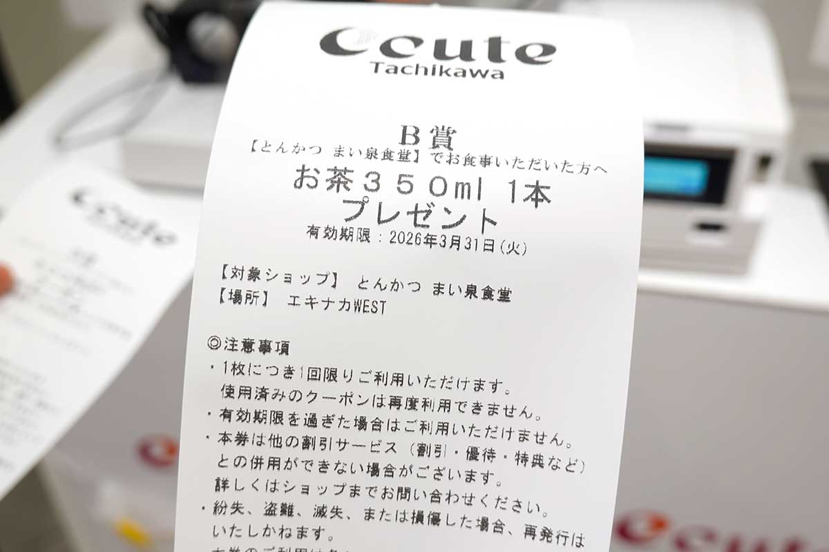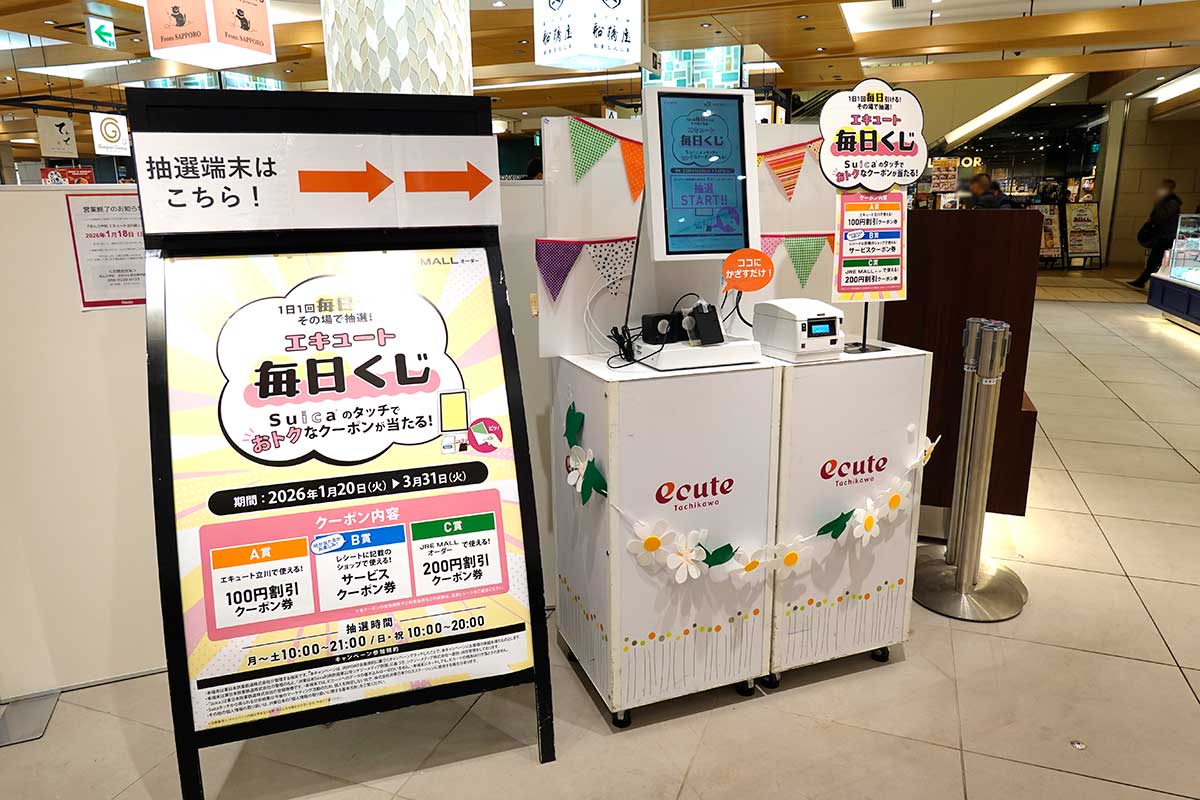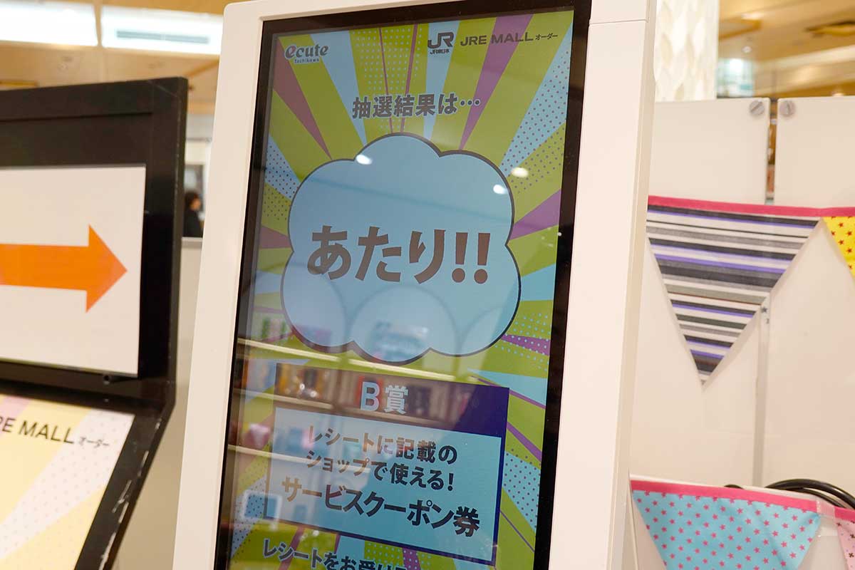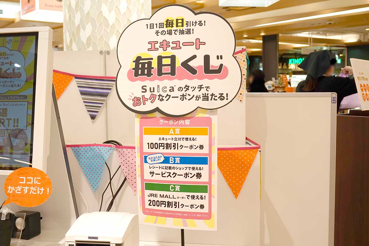 【無料】毎日クーポン当てまくり!エキュート立川2階にある「エキュート毎日くじ」を引いてみた。3月31日(火)までの開催