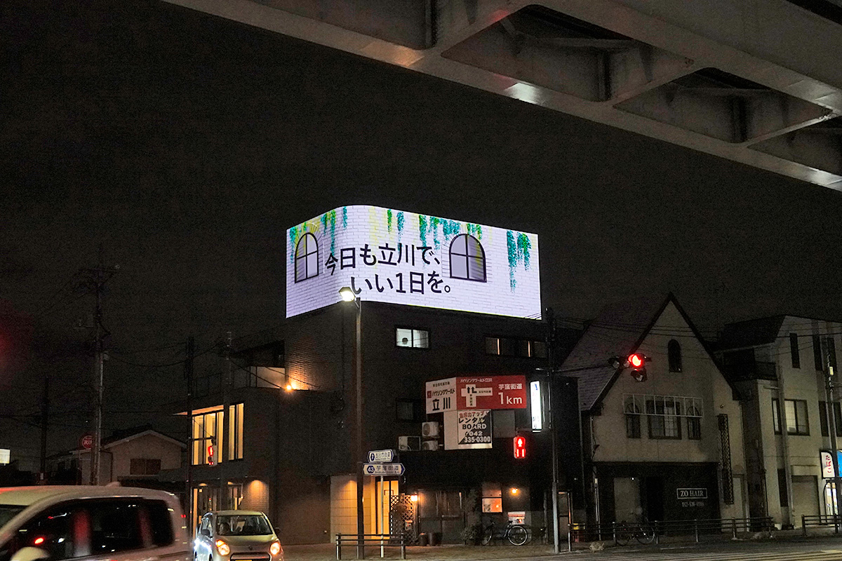 砂川七番に巨大ビジョンが登場!多摩地区初の大型3Dビジョン「ナナナビジョン」がテスト上映してた