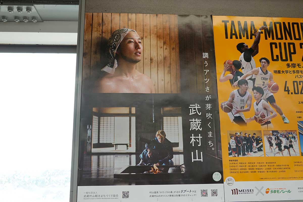 『かたくりの湯』もリブートしちゃう?多摩モノレールのすべての駅に武蔵村山市の魅力発信ポスターが貼られてる