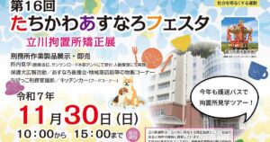 立川拘置所主催「第16回たちかわあすなろフェスタ(立川拘置所矯正展)」が開催されます。