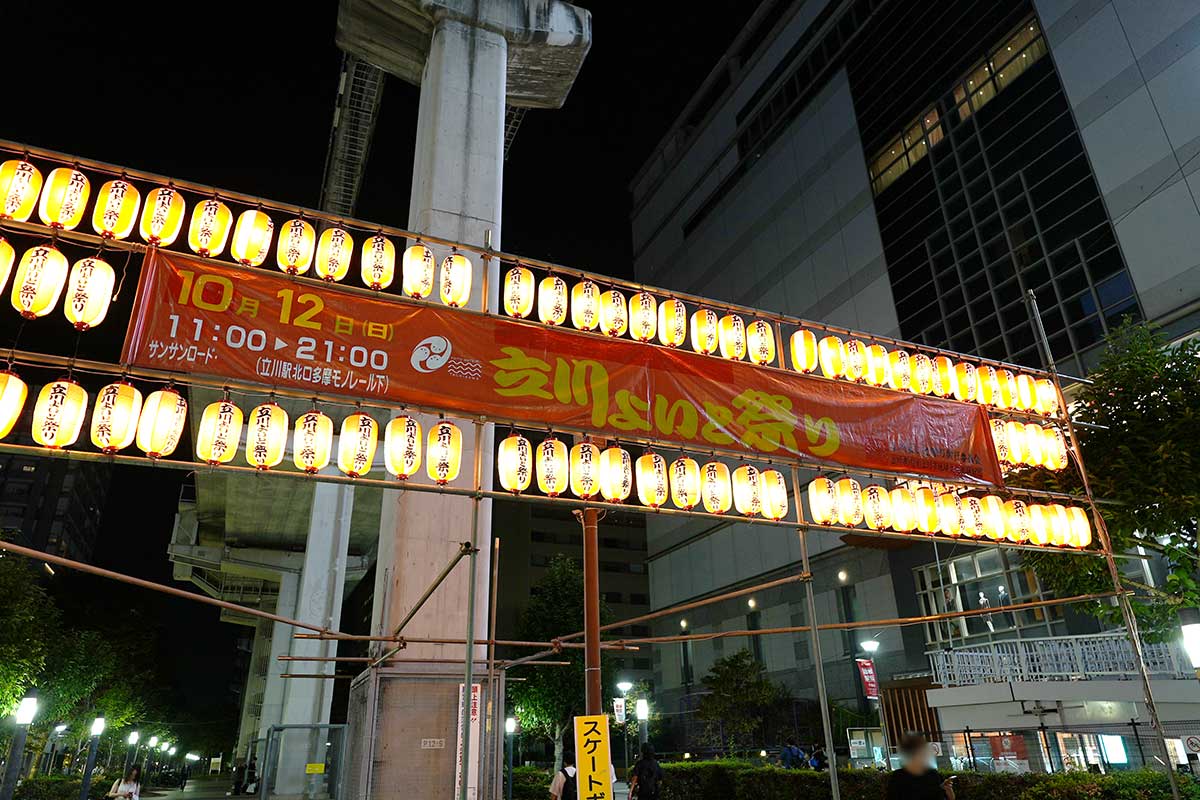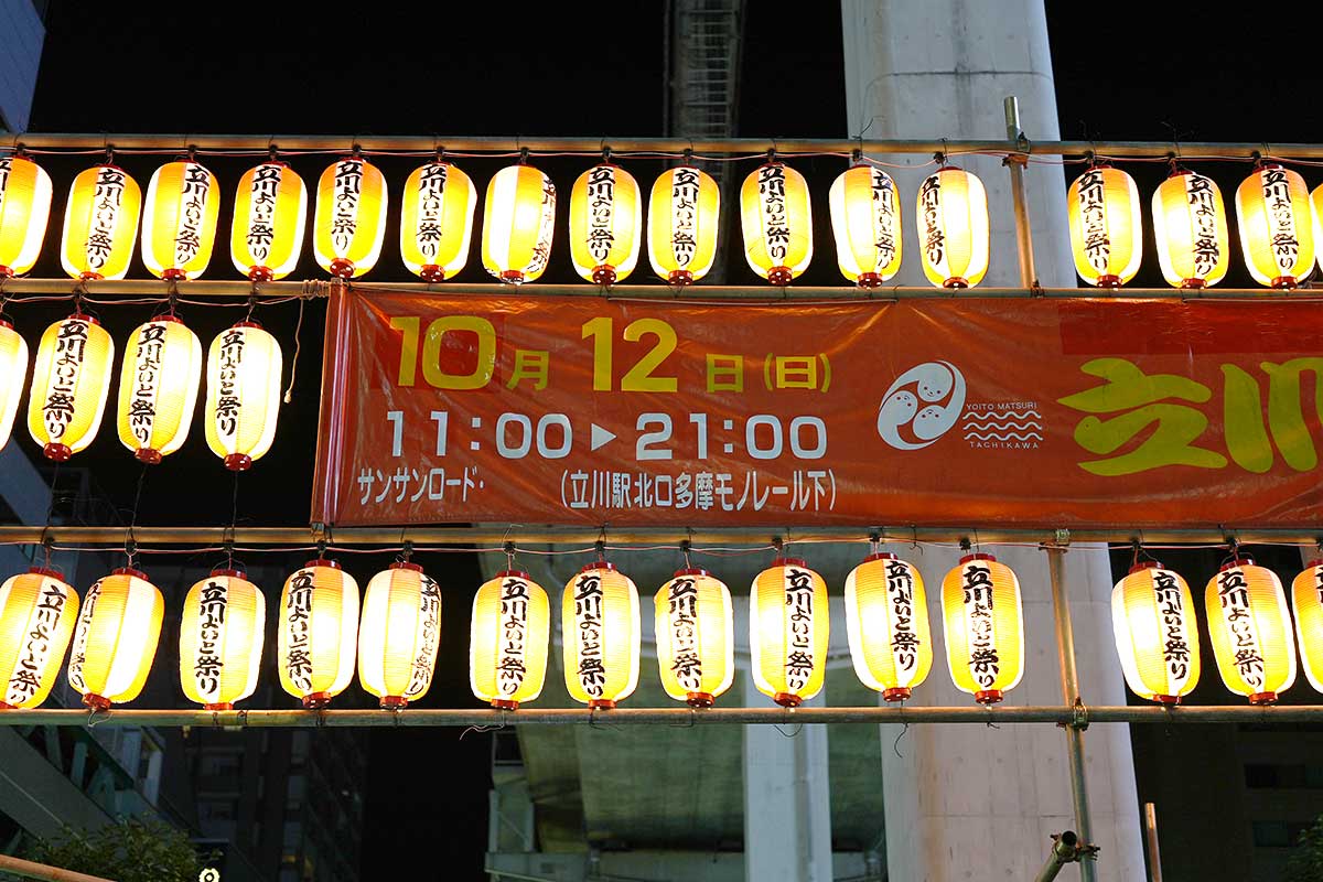 10/12(日)はよいと祭り!サンサンロードに「立川よいと祭り」の提灯が出てる