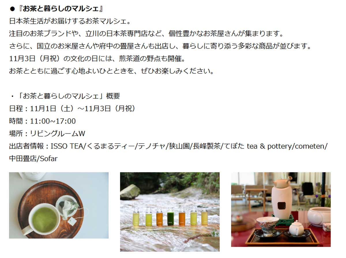 さらに日本茶専門店やお米屋さん、畳屋さんなどが出店する「お茶と暮らしのマルシェ」も同時開催。