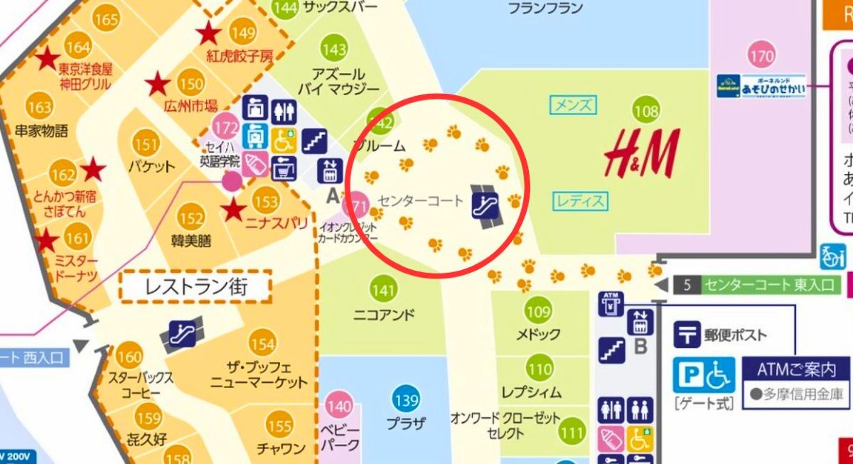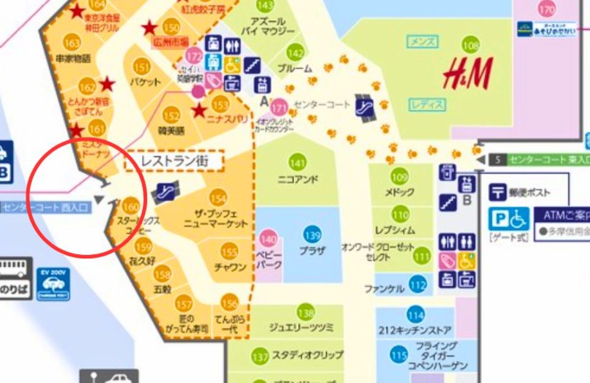 センターコート西入口はフロアガイドだとココ↓