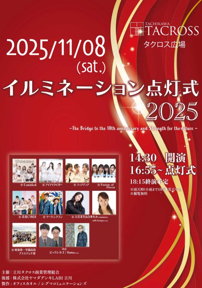 【観覧無料】アーティストも多数登場!11/8(土)にタクロス広場で「イルミネーション点灯式2025」が開催。14:30開演、16:55~点灯式
