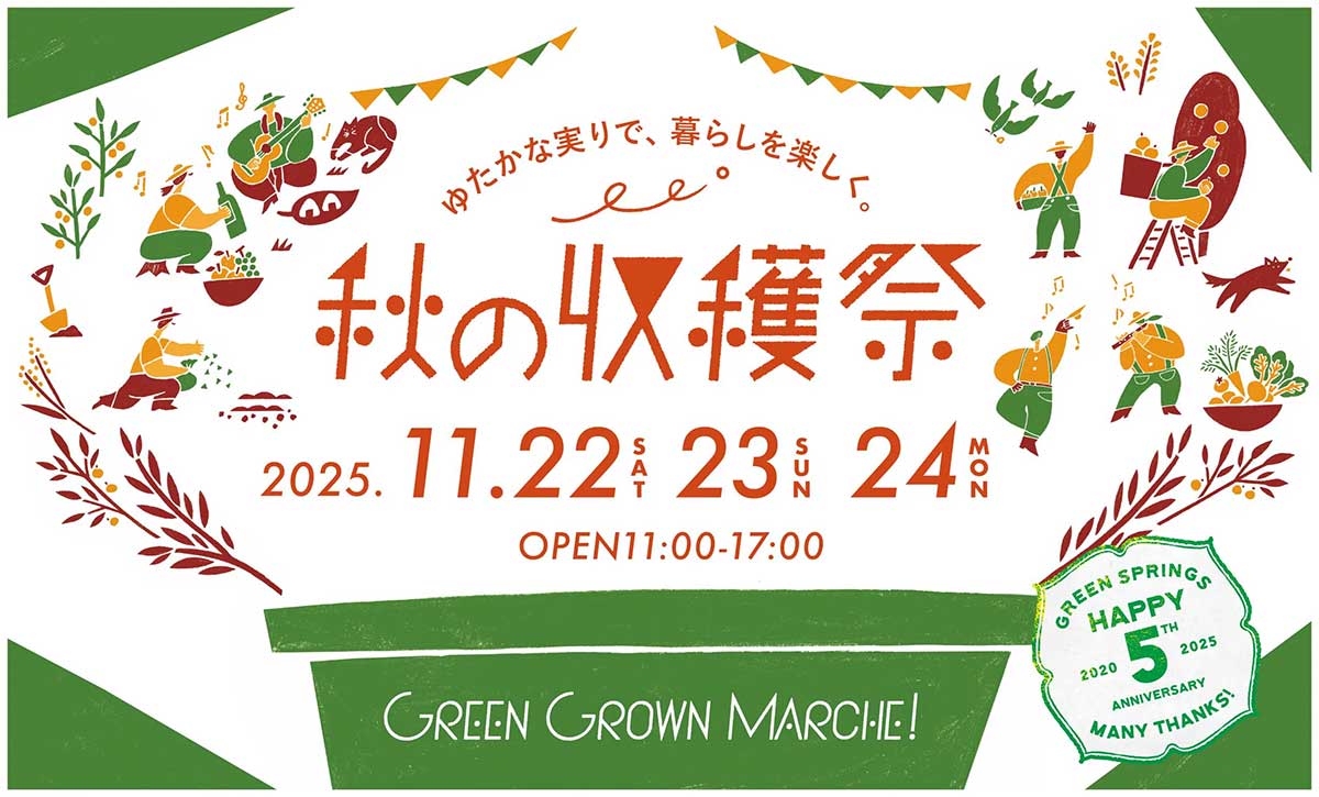 グリスプで「食」のお祭り!11月22日(土)~24日(月・祝)の3連休にグリーンスプリングスで「GREEN GROWN MARCHE! 秋の収穫祭」が開催