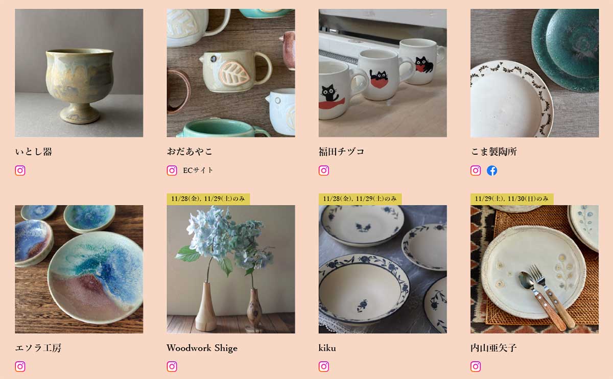 たくさんの陶芸作家さんの作品が並ぶ工藝マルシェや、