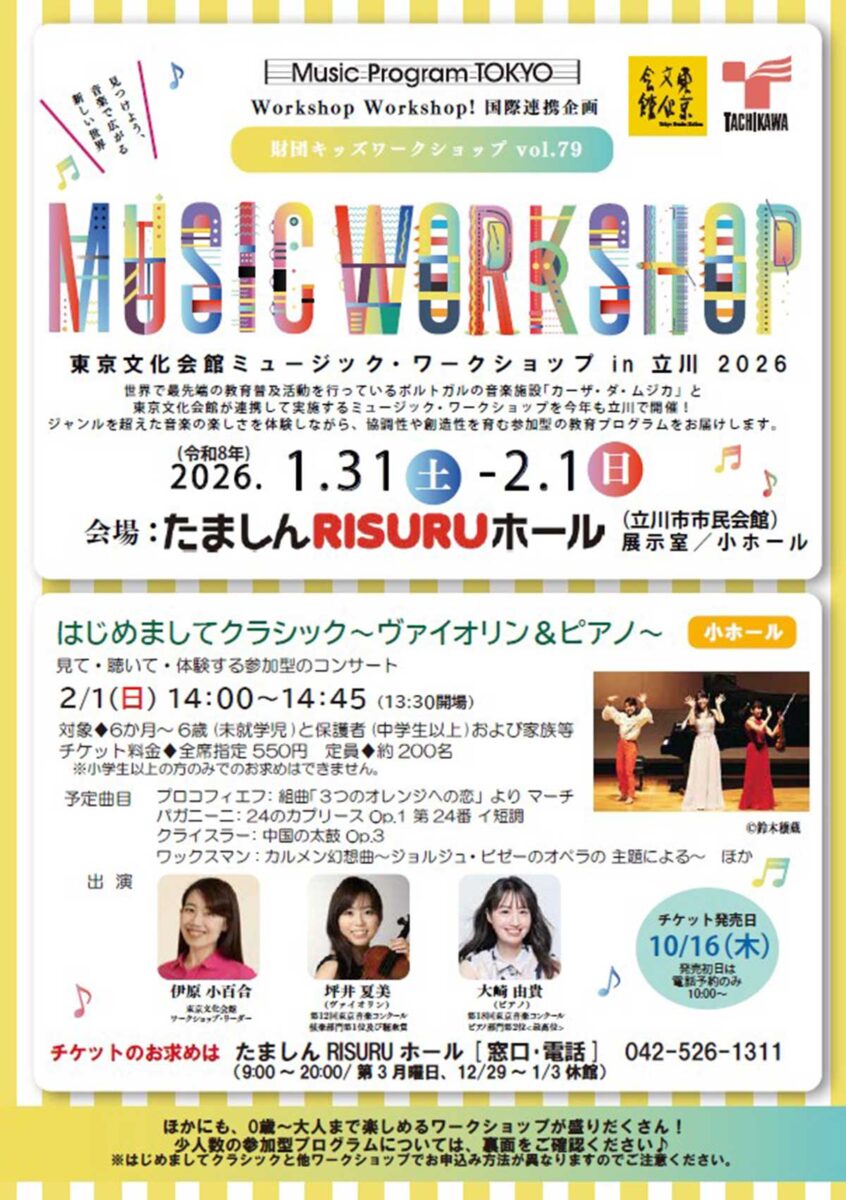 「東京文化会館ミュージック・ワークショップ in 立川 2026」が開催されるようです。