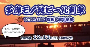 多摩モノレールに乗りながら地ビールなどを楽しめるイベントが開催されるようです。