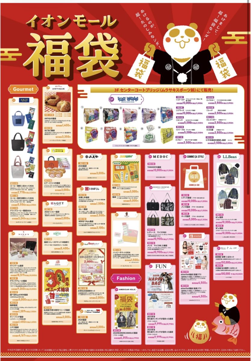 2026年のイオンモール福袋ラインナップはこちら↓