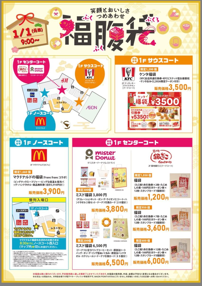 イオンモールむさし村山でも1月1日(木)の元日から福袋を販売開始します。